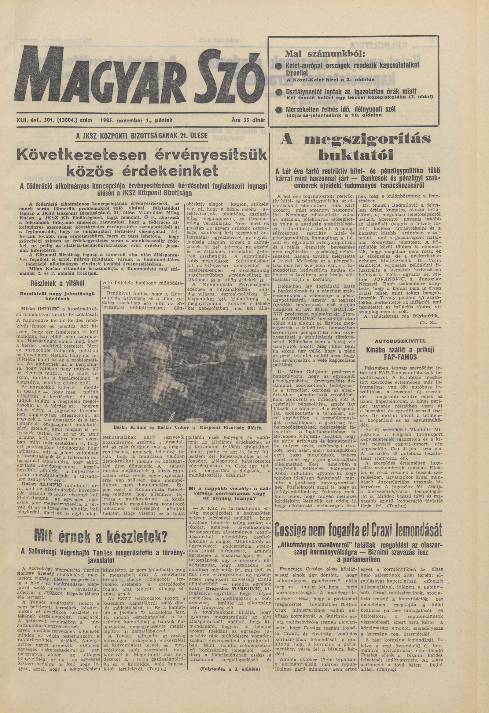 Magyar Szó, 42. évf. 1985. november 1. 301. sz. 1–10. oldal