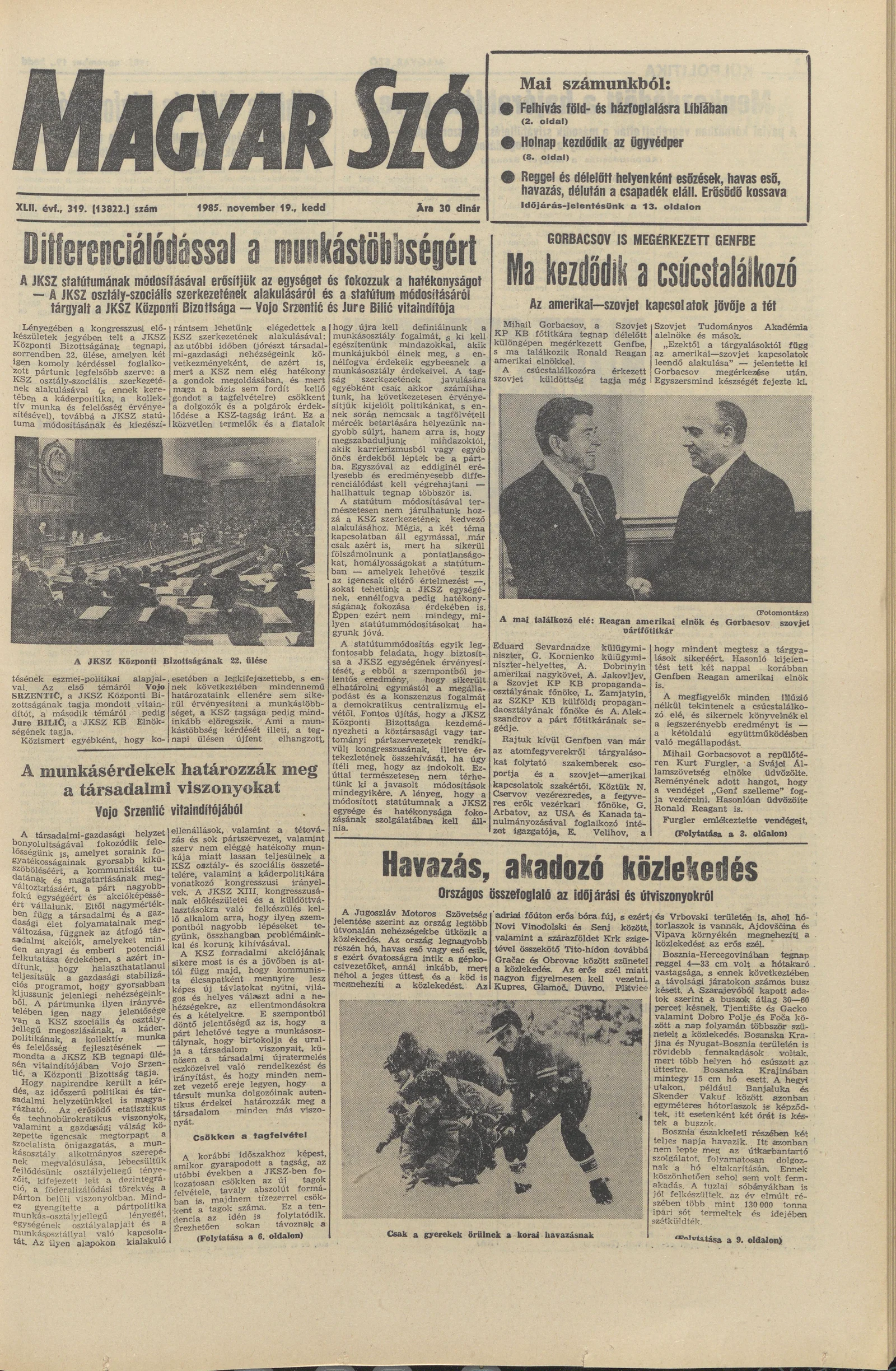 Magyar Szó, 42. évf. 1985. november 19. 319. sz. 1–20. oldal