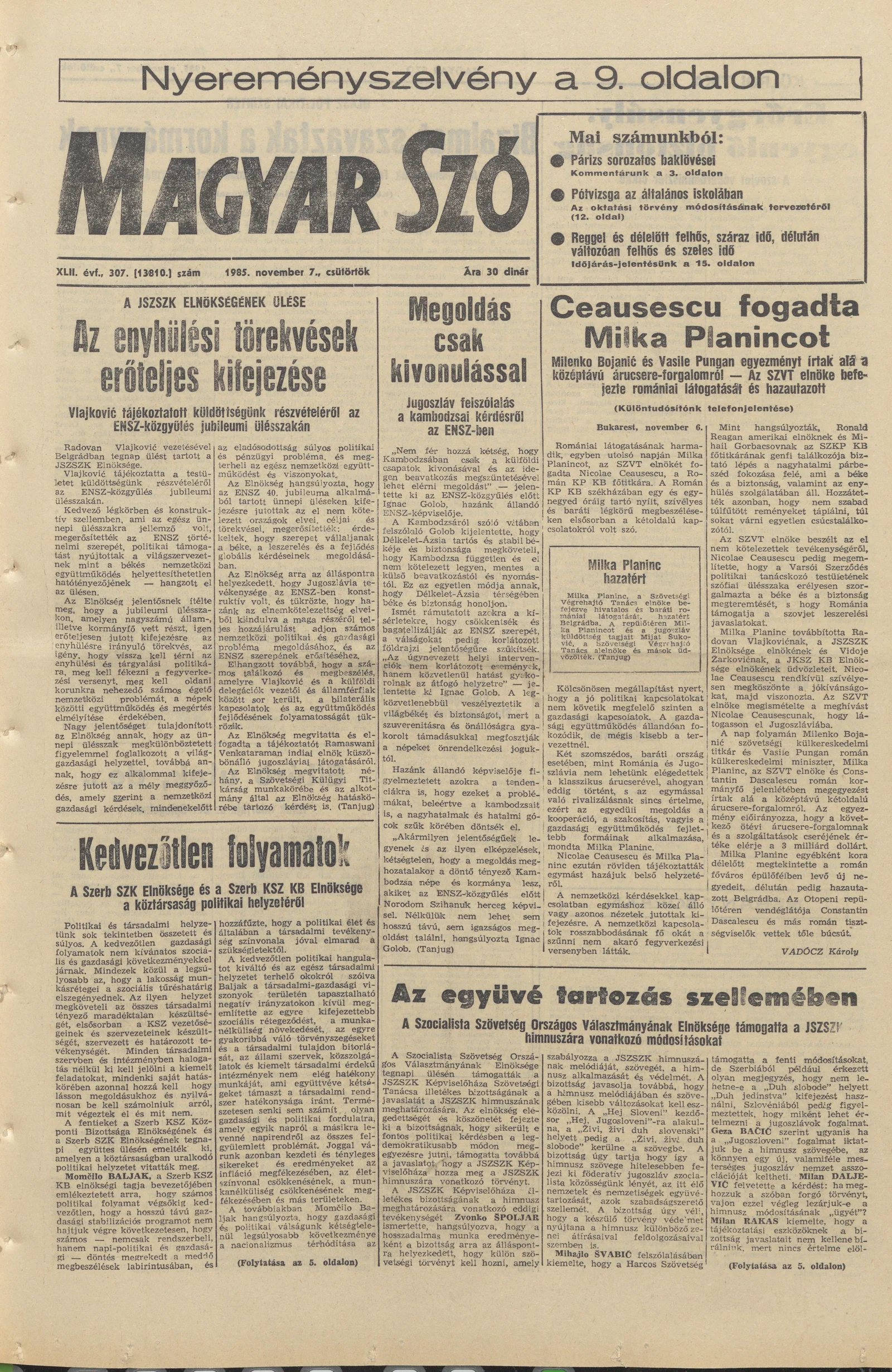 Magyar Szó, 42. évf. 1985. november 7. 307. sz. 1–20. oldal