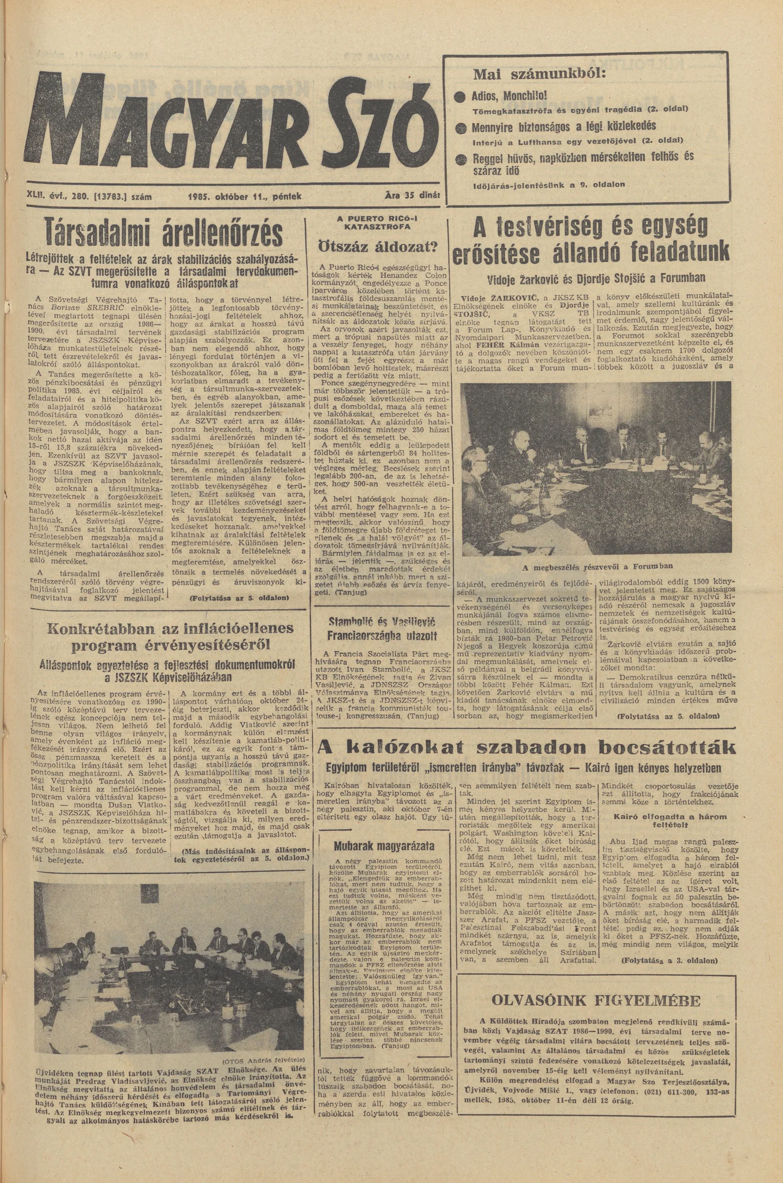 Magyar Szó, 42. évf. 1985. október 11. 280. sz. 1–20. oldal