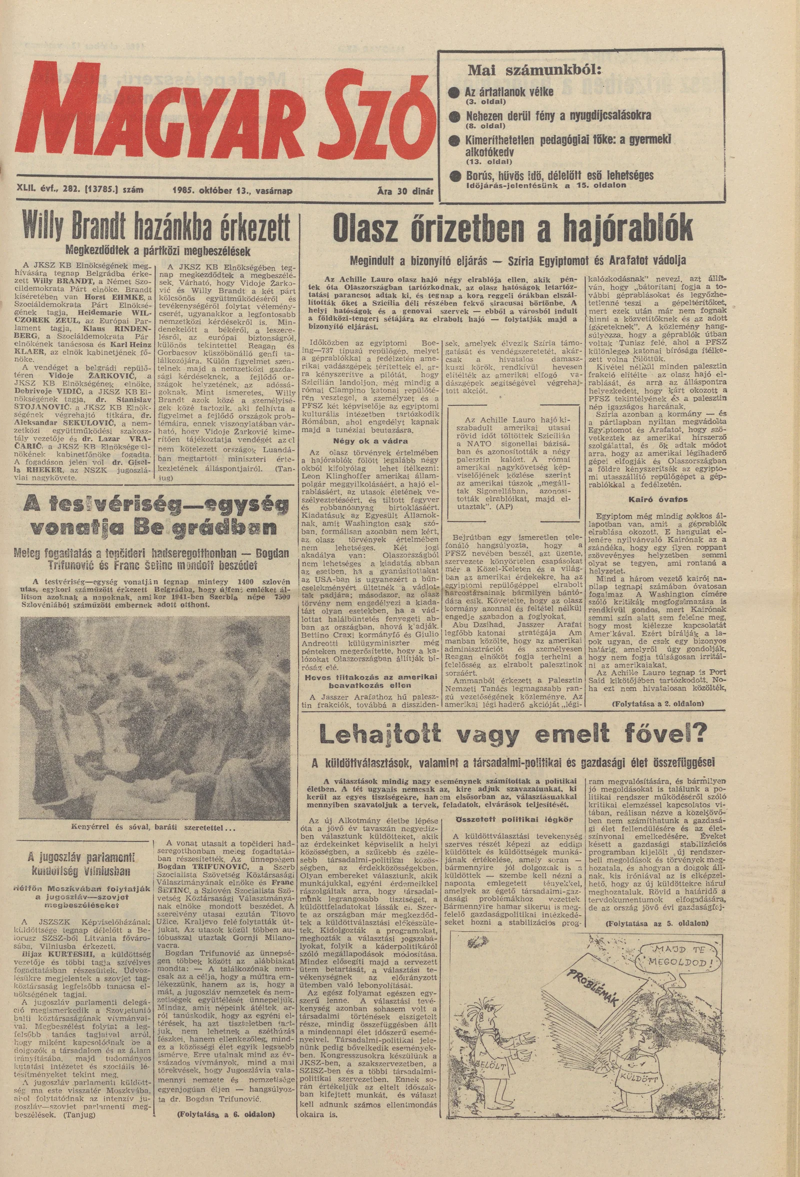 Magyar Szó, 42. évf. 1985. október 13. 282. sz. 1–28. oldal
