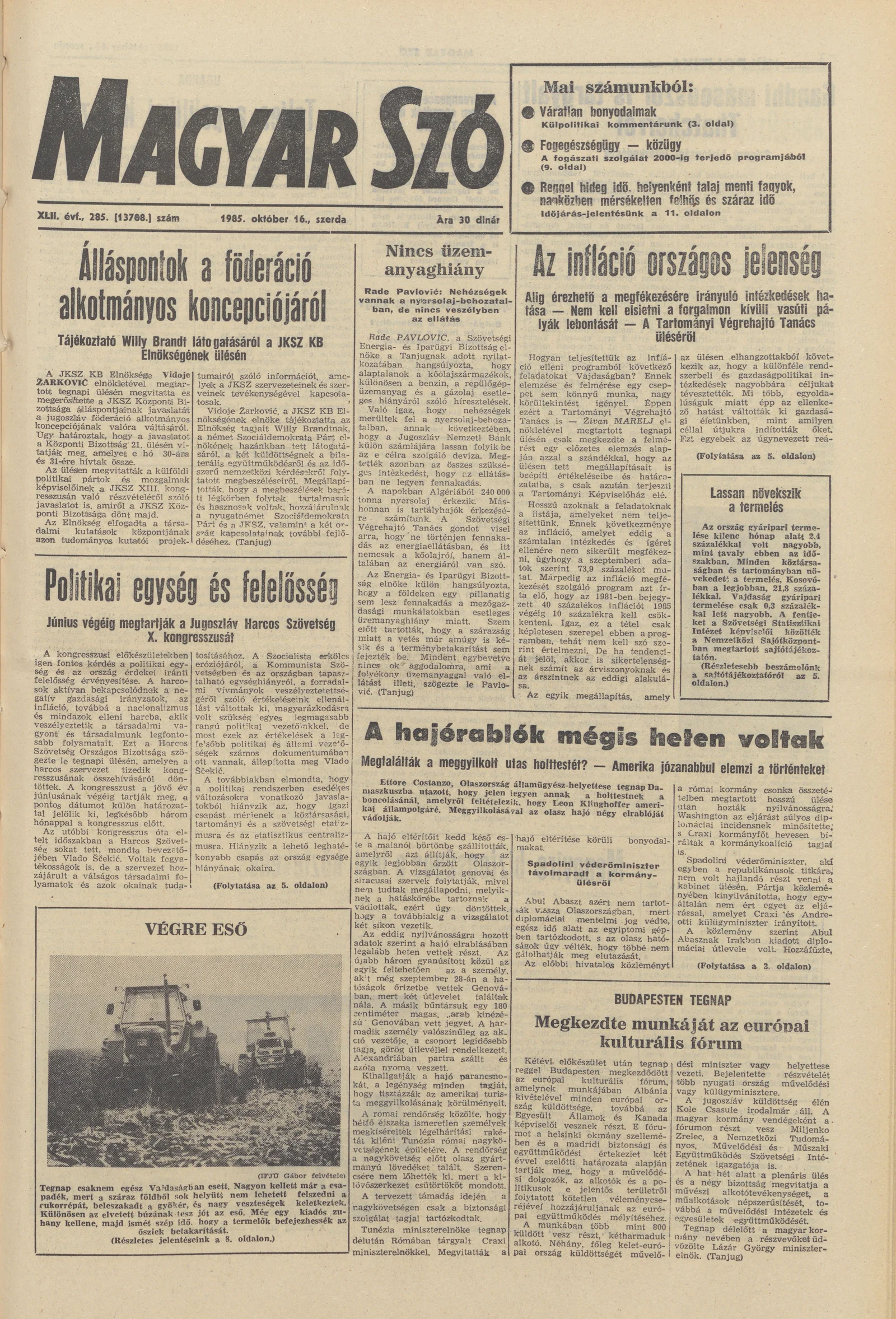 Magyar Szó, 42. évf. 1985. október 16. 285. sz. 1–16. oldal
