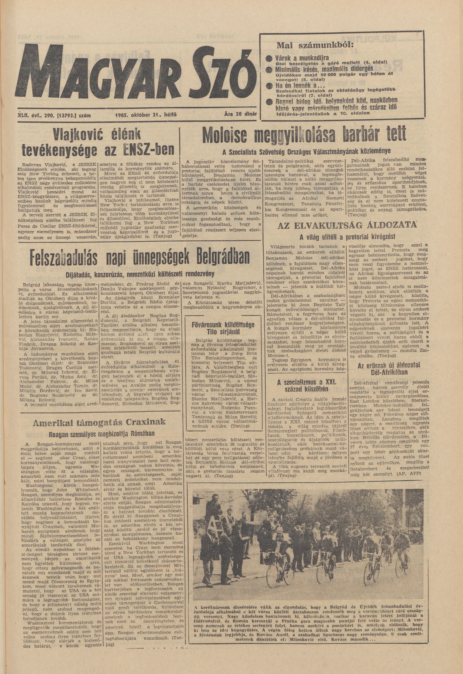 Magyar Szó, 42. évf. 1985. október 21. 290. sz. 1–20. oldal