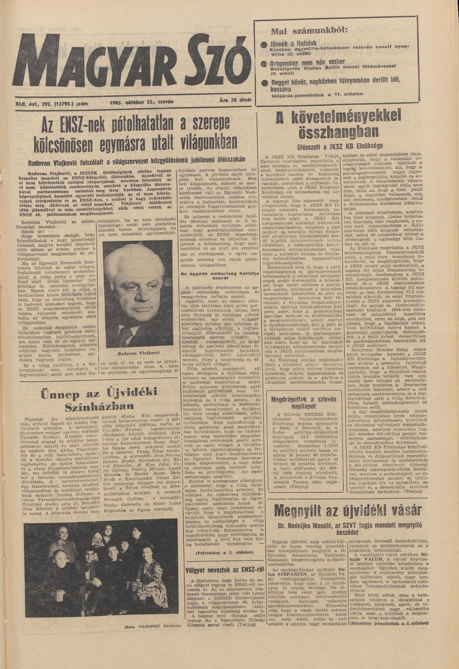 Magyar Szó, 42. évf. 1985. október 23. 292. sz. 1–16. oldal