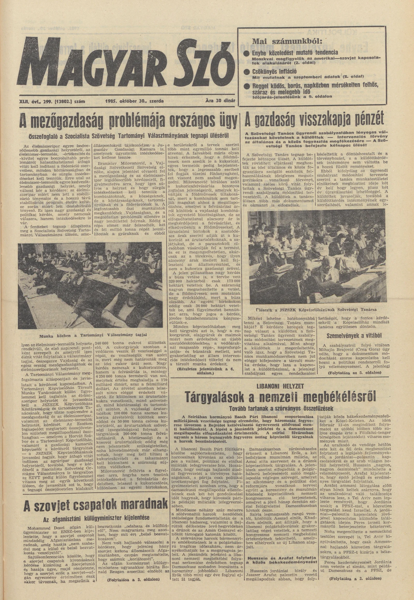 Magyar Szó, 42. évf. 1985. október 30. 299. sz. 1–16. oldal