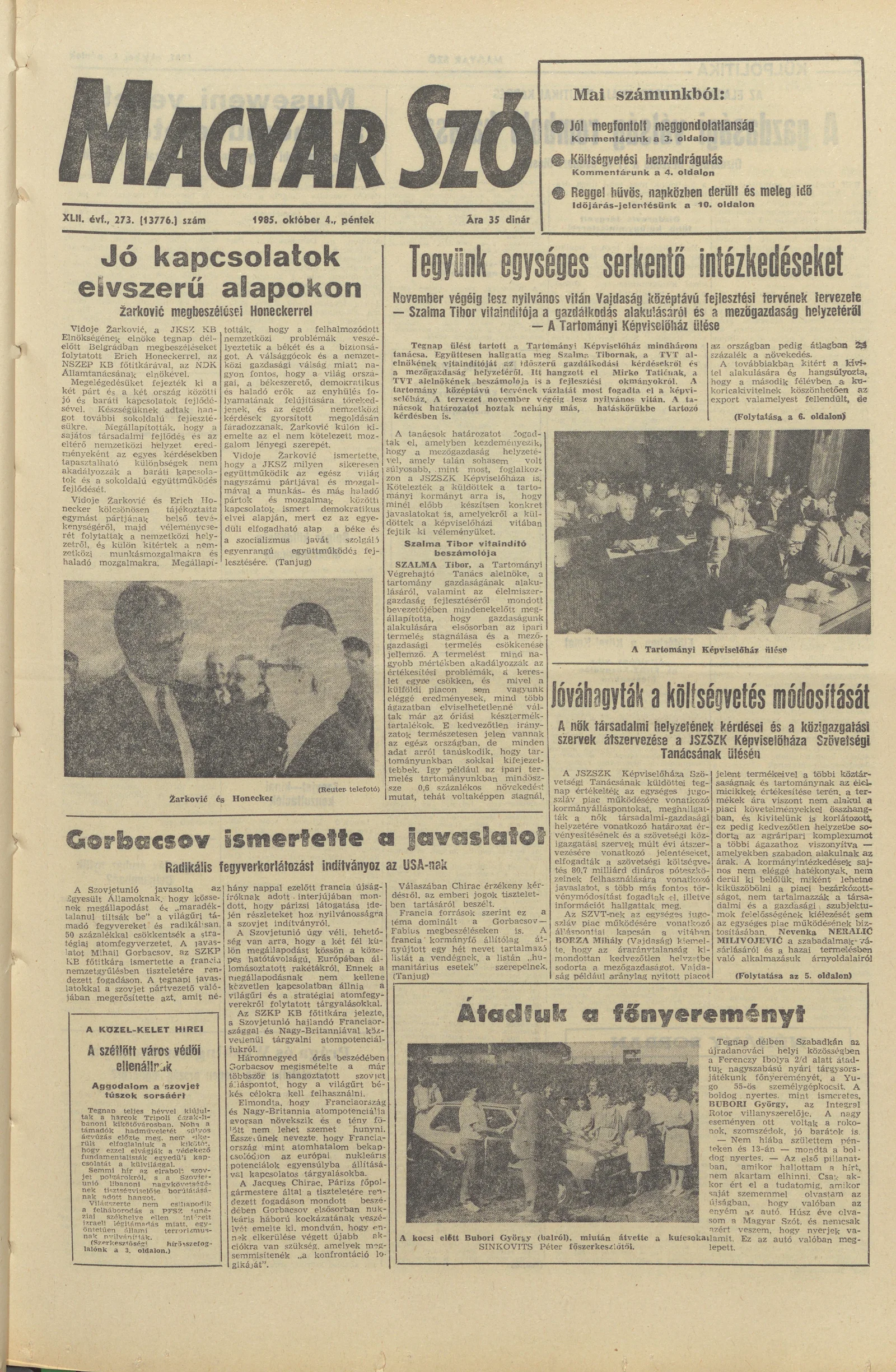 Magyar Szó, 42. évf. 1985. október 4. 273. sz. 1–20. oldal