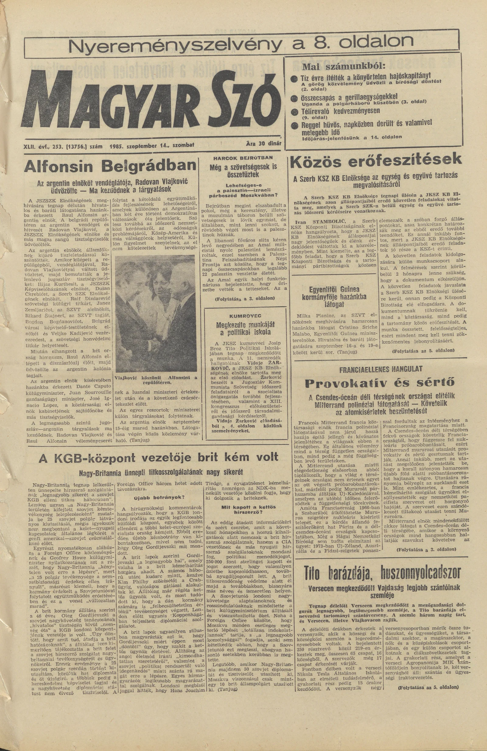 Magyar Szó, 42. évf. 1985. szeptember 14. 253. sz. 1–28. oldal