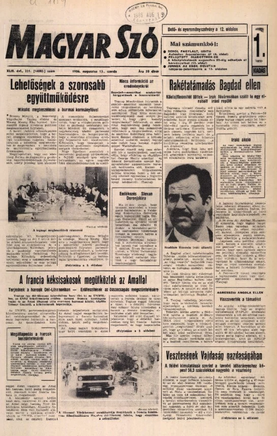 Magyar Szó, 43. évf. 1986. augusztus 13. 221. sz. 1–16. oldal