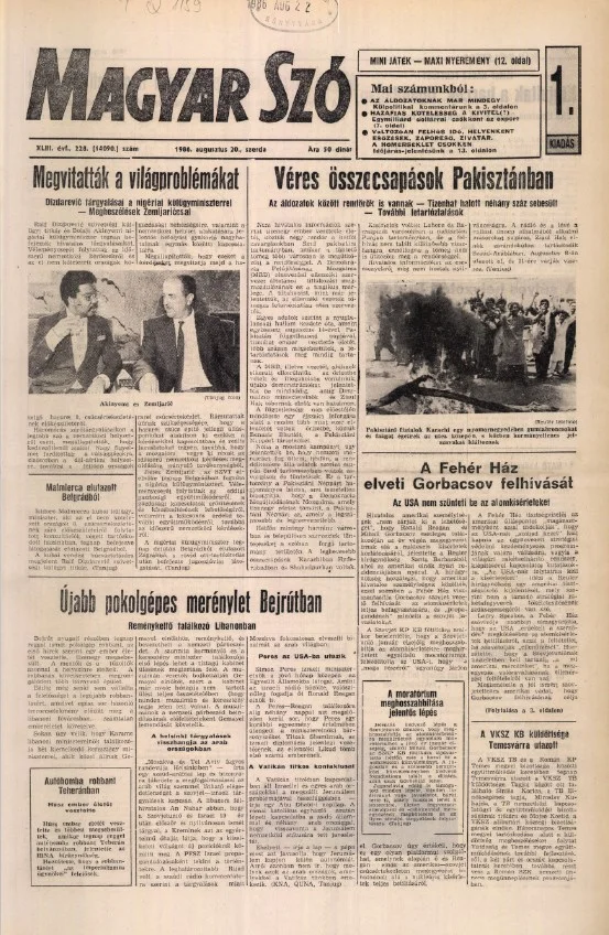 Magyar Szó, 43. évf. 1986. augusztus 20. 228. sz. 1–20. oldal