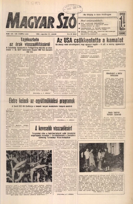 Magyar Szó, 43. évf. 1986. augusztus 22. 230. sz. 1–16. oldal