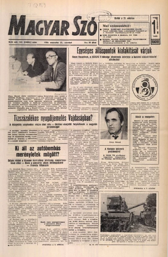 Magyar Szó, 43. évf. 1986. augusztus 23. 231. sz. 1–24. oldal