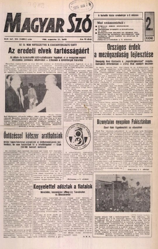 Magyar Szó, 43. évf. 1986. augusztus 25. 233. sz. 1–16. oldal