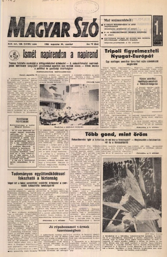 Magyar Szó, 43. évf. 1986. augusztus 30. 238. sz. 1–24. oldal
