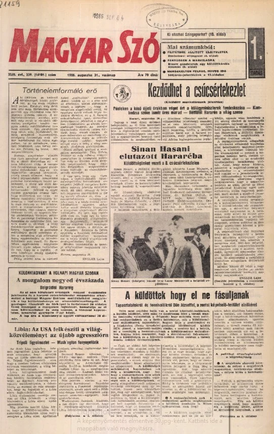 Magyar Szó, 43. évf. 1986. augusztus 31. 239. sz. 1–28. oldal