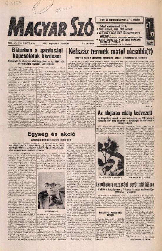 Magyar Szó, 43. évf. 1986. augusztus 7. 215. sz. 1–16. oldal