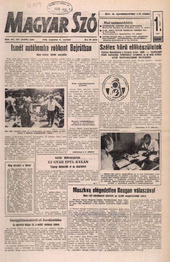 Magyar Szó, 43. évf. 1986. augusztus 9. 217. sz. 1–24. oldal