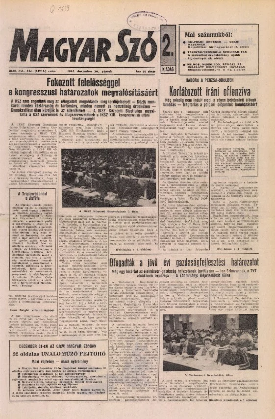 Magyar Szó, 43. évf. 1986. december 26. 354. sz. 1–16. oldal