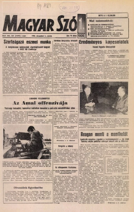 Magyar Szó, 43. évf. 1986. december 3. 331. sz. 1–16. oldal