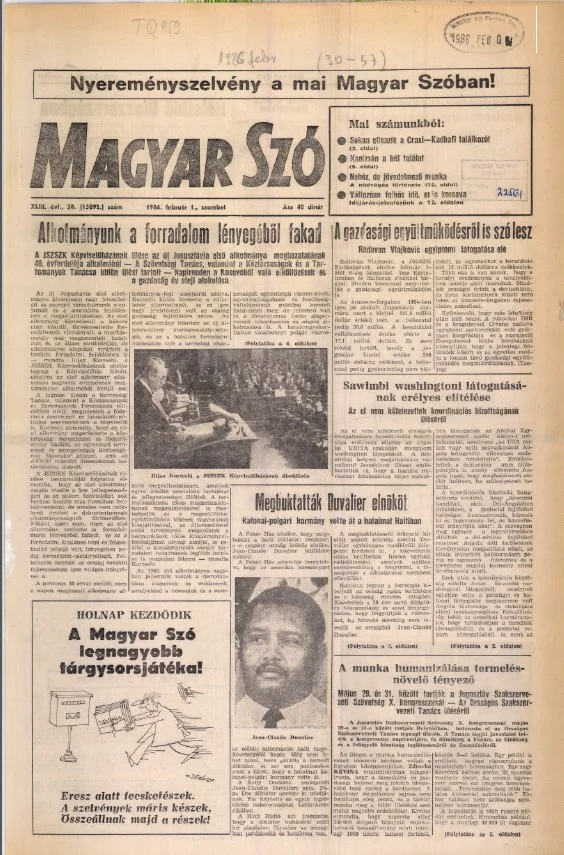Magyar Szó, 43. évf. 1986. február 1. 30. sz. 1–24. oldal