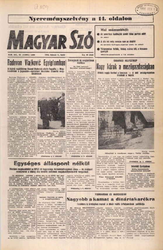 Magyar Szó, 43. évf. 1986. február 4. 33. sz. 1–20. oldal