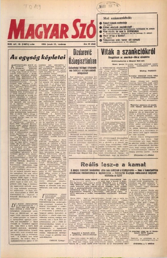Magyar Szó, 43. évf. 1986. január 12. 10. sz. 1–28. oldal