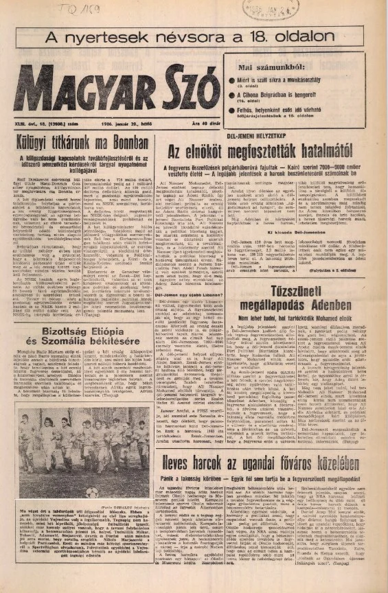 Magyar Szó, 43. évf. 1986. január 20. 18. sz. 1–20. oldal