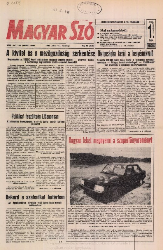 Magyar Szó, 43. évf. 1986. július 13. 190. sz. 1–28. oldal