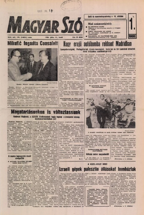 Magyar Szó, 43. évf. 1986. július 15. 192. sz. 1–20. oldal