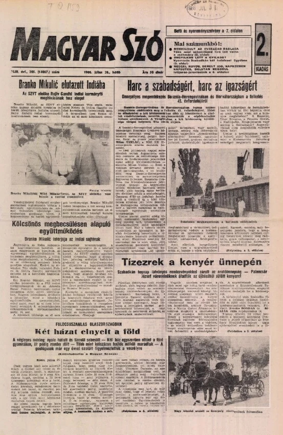 Magyar Szó, 43. évf. 1986. július 28. 205. sz. 1–16. oldal