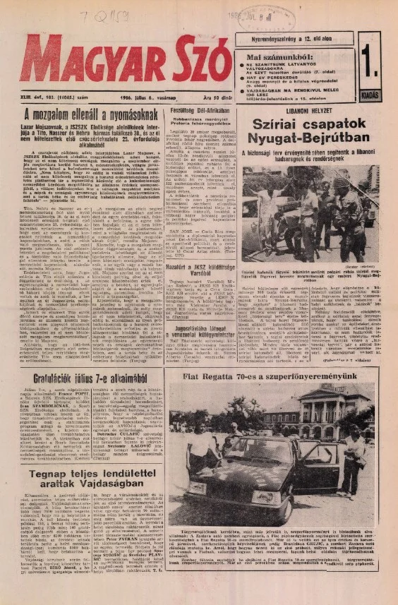 Magyar Szó, 43. évf. 1986. július 6. 183. sz. 1–28. oldal