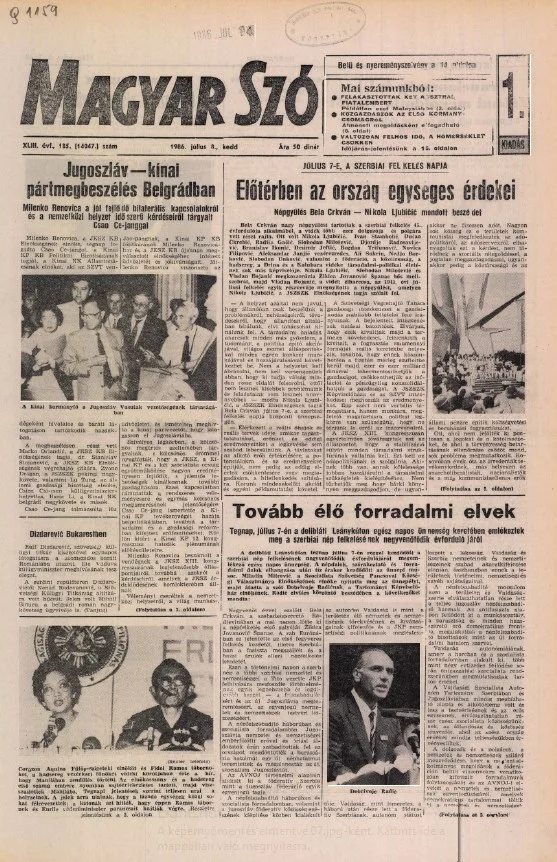Magyar Szó, 43. évf. 1986. július 8. 185. sz. 1–20. oldal