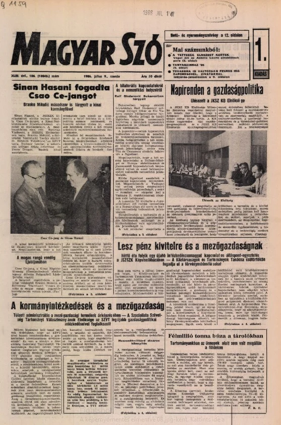 Magyar Szó, 43. évf. 1986. július 9. 186. sz. 1–16. oldal