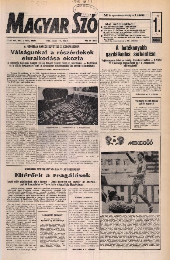Magyar Szó, 43. évf. 1986. június 10. 157. sz. 1–20. oldal