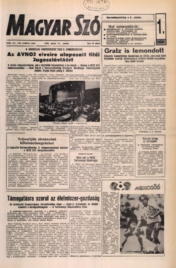 Magyar Szó, 43. évf. 1986. június 11. 158. sz. 1–16. oldal