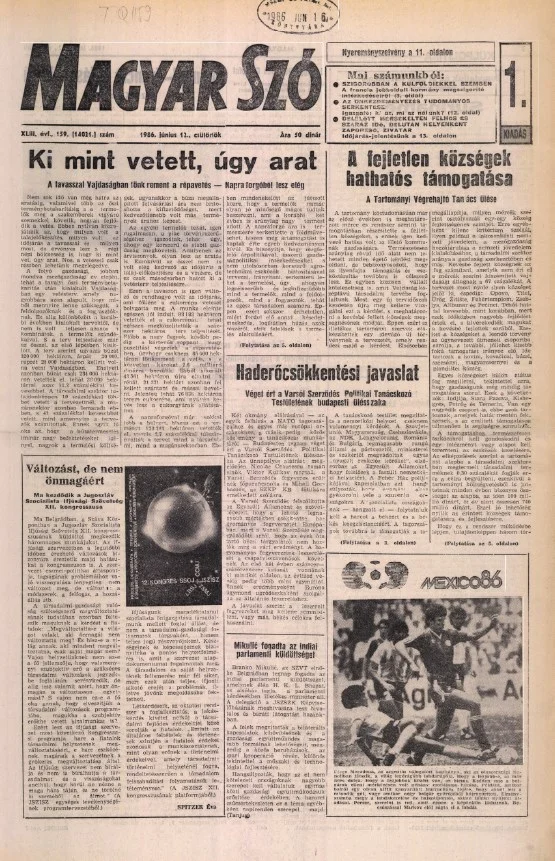 Magyar Szó, 43. évf. 1986. június 12. 159. sz. 1–20. oldal