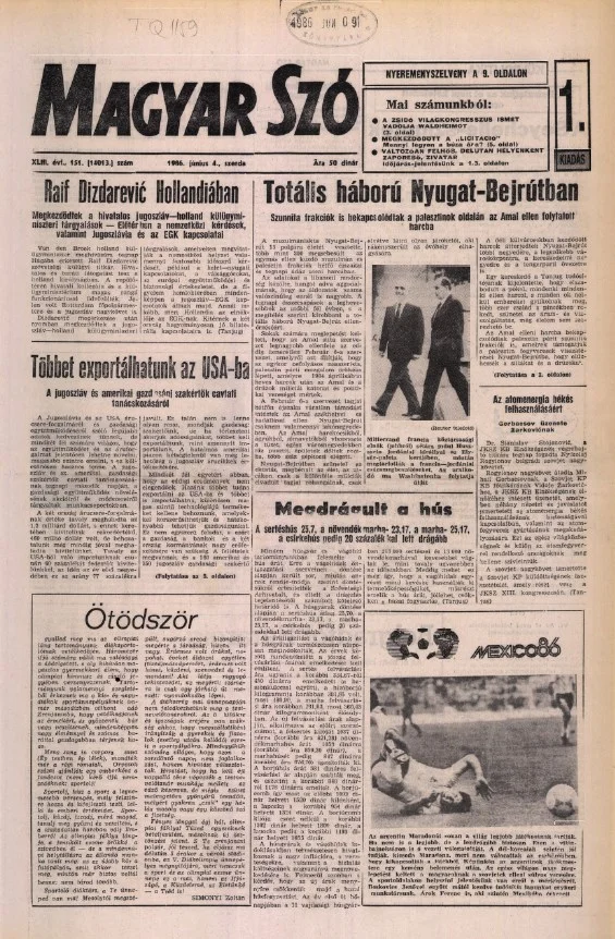 Magyar Szó, 43. évf. 1986. június 4. 151. sz. 1–16. oldal