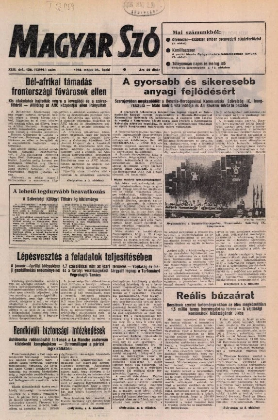 Magyar Szó, 43. évf. 1986. május 20. 136. sz. 1–20. oldal