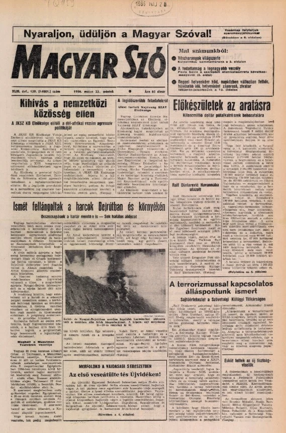 Magyar Szó, 43. évf. 1986. május 23. 139. sz. 1–24. oldal