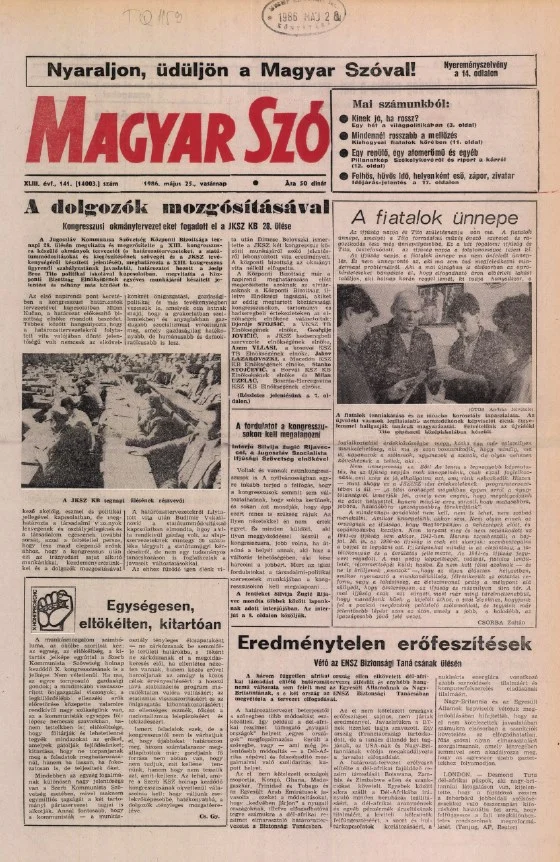 Magyar Szó, 43. évf. 1986. május 25. 141. sz. 1–32. oldal