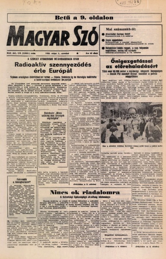 Magyar Szó, 43. évf. 1986. május 3. 119. sz. 1–20. oldal