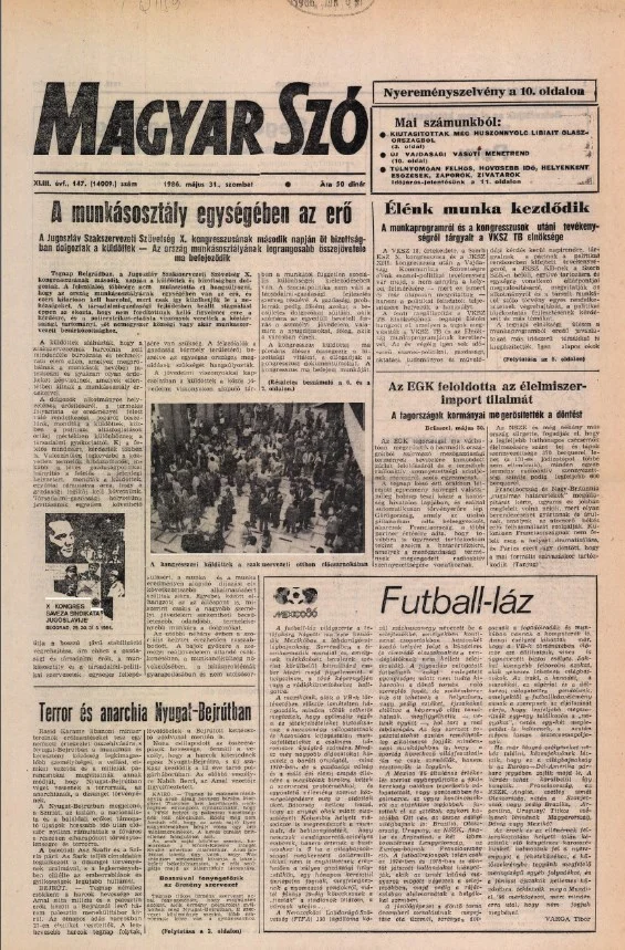 Magyar Szó, 43. évf. 1986. május 31. 147. sz. 1–24. oldal