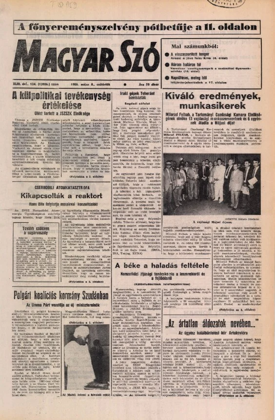 Magyar Szó, 43. évf. 1986. május 8. 124. sz. 1–20. oldal