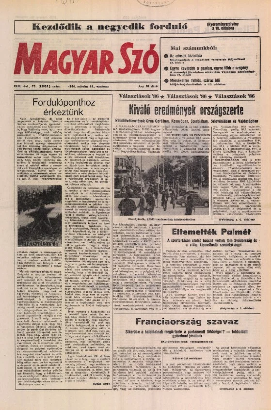 Magyar Szó, 43. évf. 1986. március 16. 73. sz. 1–28. oldal