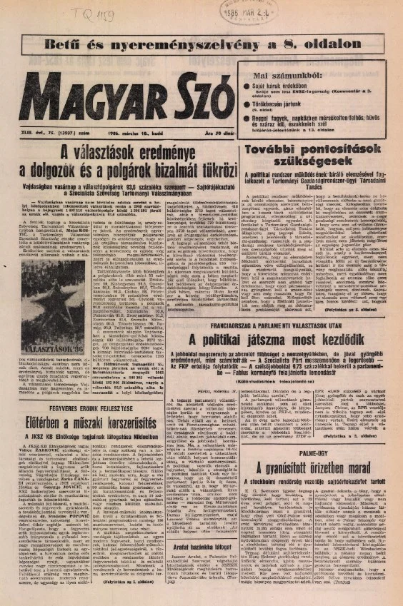 Magyar Szó, 43. évf. 1986. március 18. 75. sz. 1–20. oldal