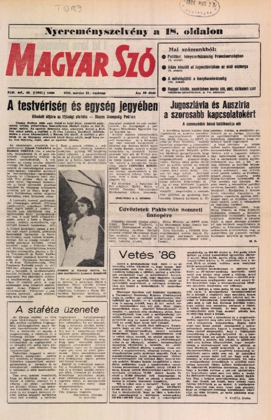 Magyar Szó, 43. évf. 1986. március 23. 80. sz. 1–28. oldal