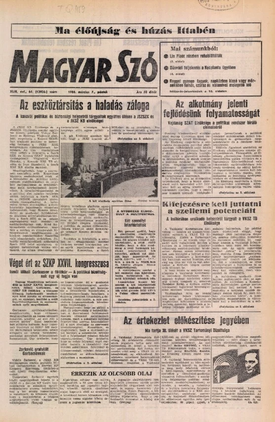 Magyar Szó, 43. évf. 1986. március 7. 64. sz. 1–20. oldal