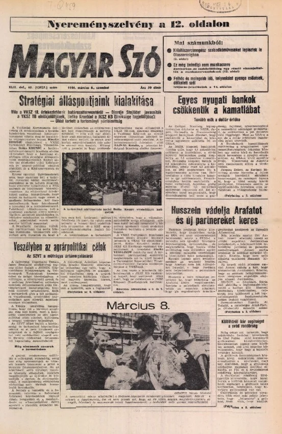 Magyar Szó, 43. évf. 1986. március 8. 65. sz. 1–28. oldal