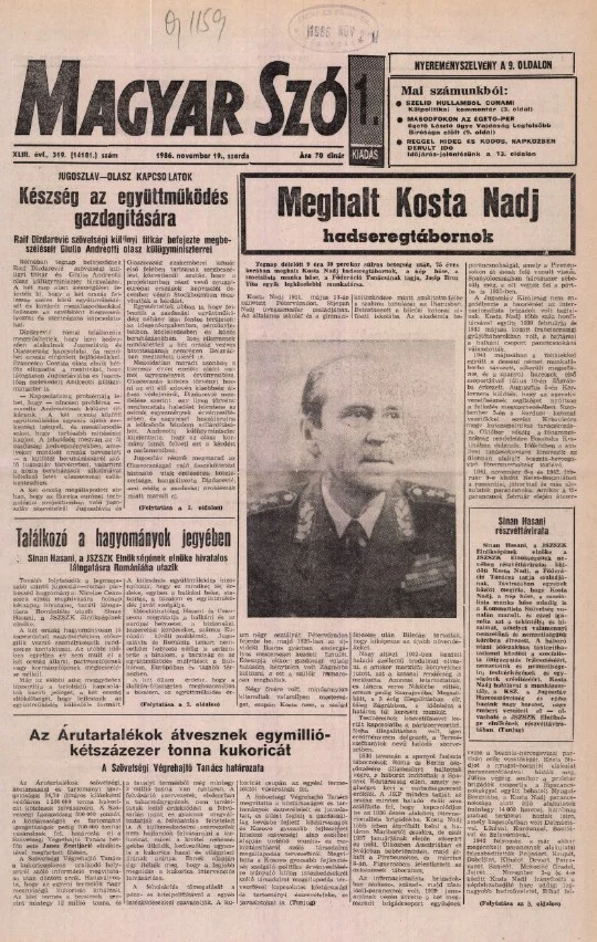 Magyar Szó, 43. évf. 1986. november 19. 319. sz. 1–16. oldal