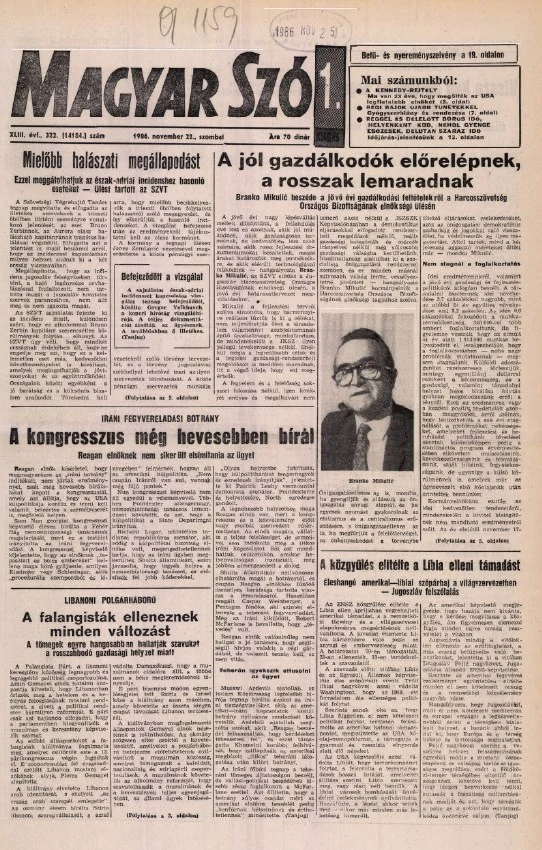 Magyar Szó, 43. évf. 1986. november 22. 322. sz. 1–24. oldal