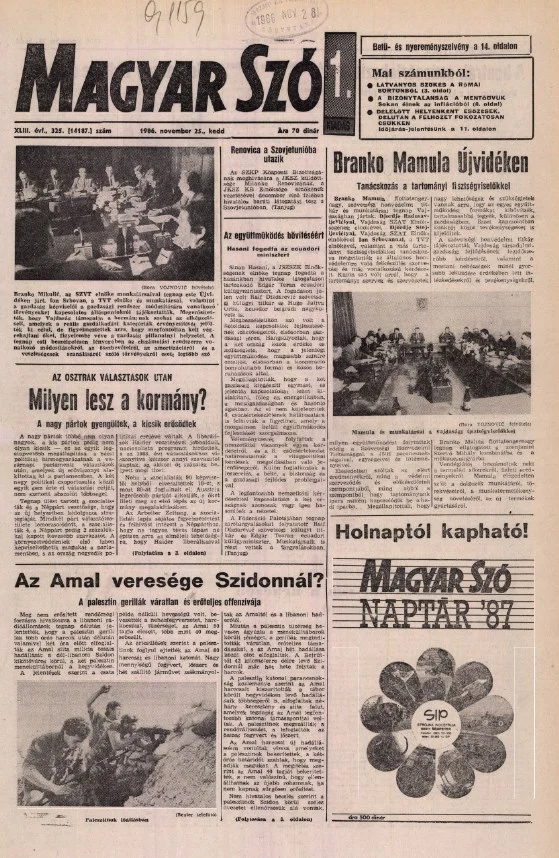 Magyar Szó, 43. évf. 1986. november 25. 325. sz. 1–20. oldal